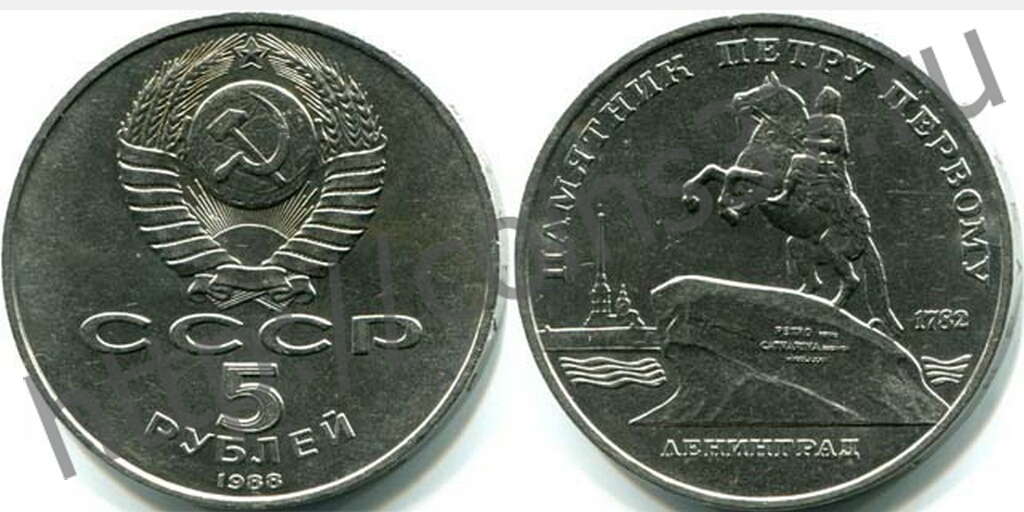 Информация: Памятник Петру Первому, город Ленинград (5 рублей)